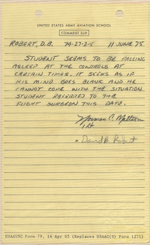 I got an IP change and a different stick buddy. Some IPs were pretty cruel. My stick buddy was a kid from Boston. This new IP would grab his shoulder harness like it was a rifle sling and act like he was marching in the aircraft insinuating that the kid from Boston might be better off in the infantry. He also told the kid that he should consider being a bus driver that there might be a little more potential for success there.